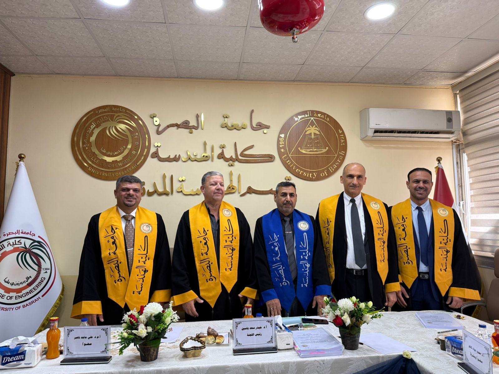نوقشت رسالة الماجستير للباحث عبدالستّار عبدالجبار كاظم في كلية الهندسة جامعة البصرة / قسم الهندسة المدنية، بعنوان: