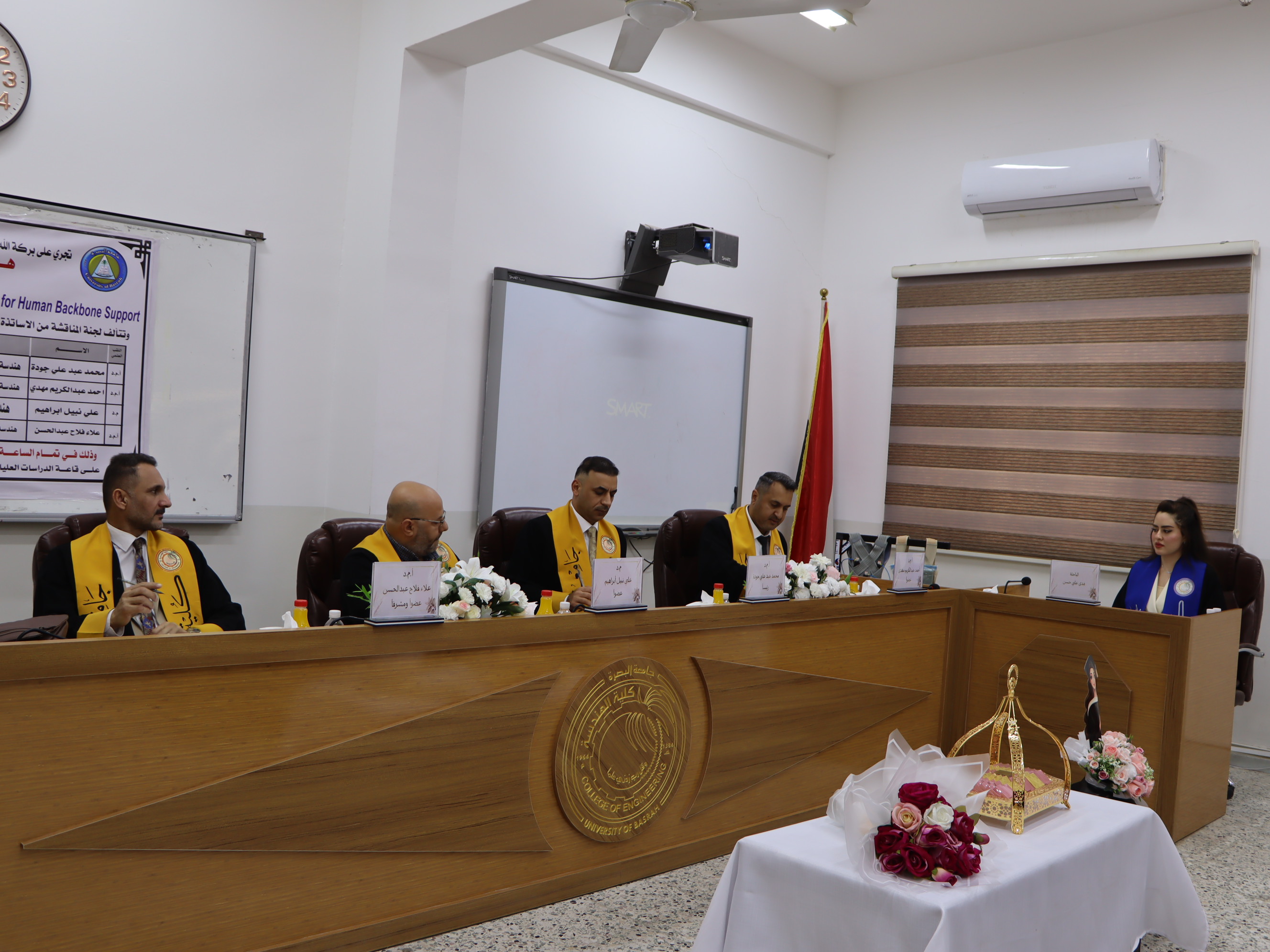 نوقشت رسالة الماجستير للباحثة هدى علي حسن في كلية الهندسة جامعة البصرة قسم هندسة الحاسبات بعنوان تطوير روبوت ناعم يعتمد على التشويش الحبيبي لدعم العمود الفقري البشري
